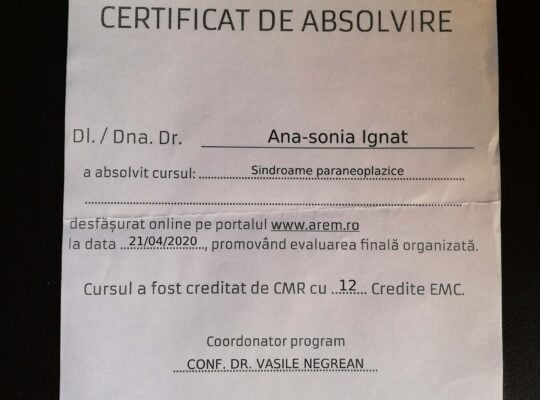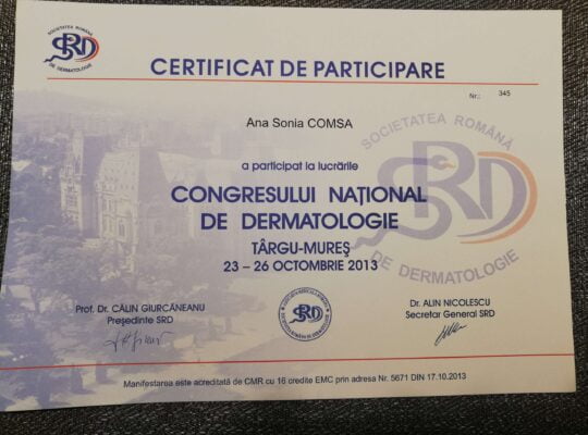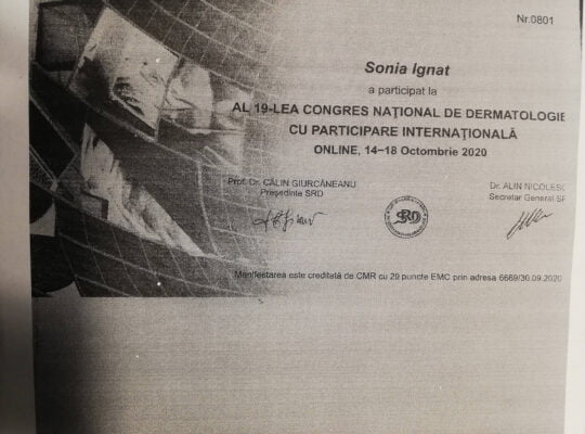 Pentru un diagnostic precoce si corect, participă în fiecare an la diverse congrese și simpozioane naționale și internaționale, pentru a fi mereu la curent cu ultimele noutăți în domeniul ei de activitate.